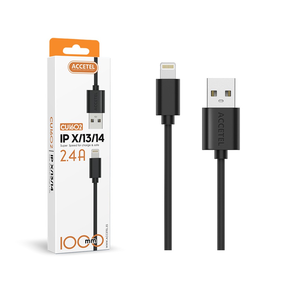 CU1602 Cable Datos 2.4A – Lightning Negro (1M) Cable de Carga y Transferencia de Datos
