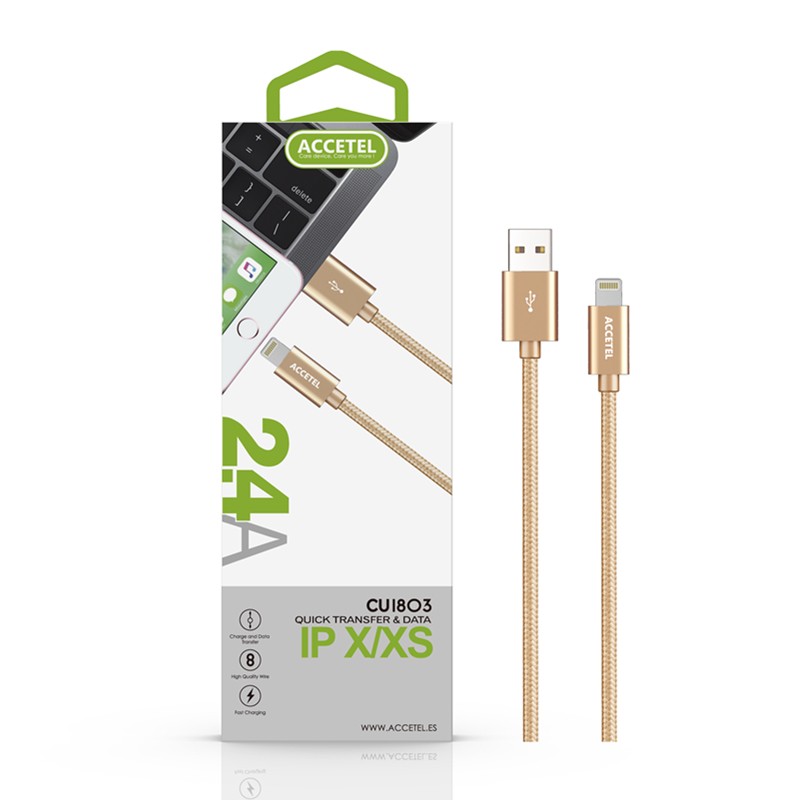 Descubre el cable CU1803 Cable Datos Nylon 2.4A – Lightning Dorado, el complemento esencial para tus dispositivos móviles. Este cable ha sido diseñado con precisión y eficacia, ofreciendo una transferencia de datos rápida y una carga eficiente gracias a sus especificaciones técnicas avanzadas y su construcción duradera.
