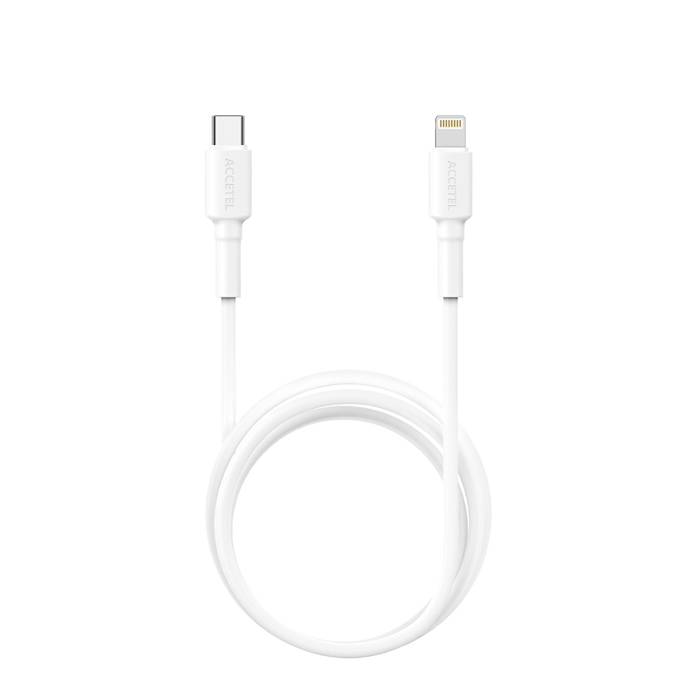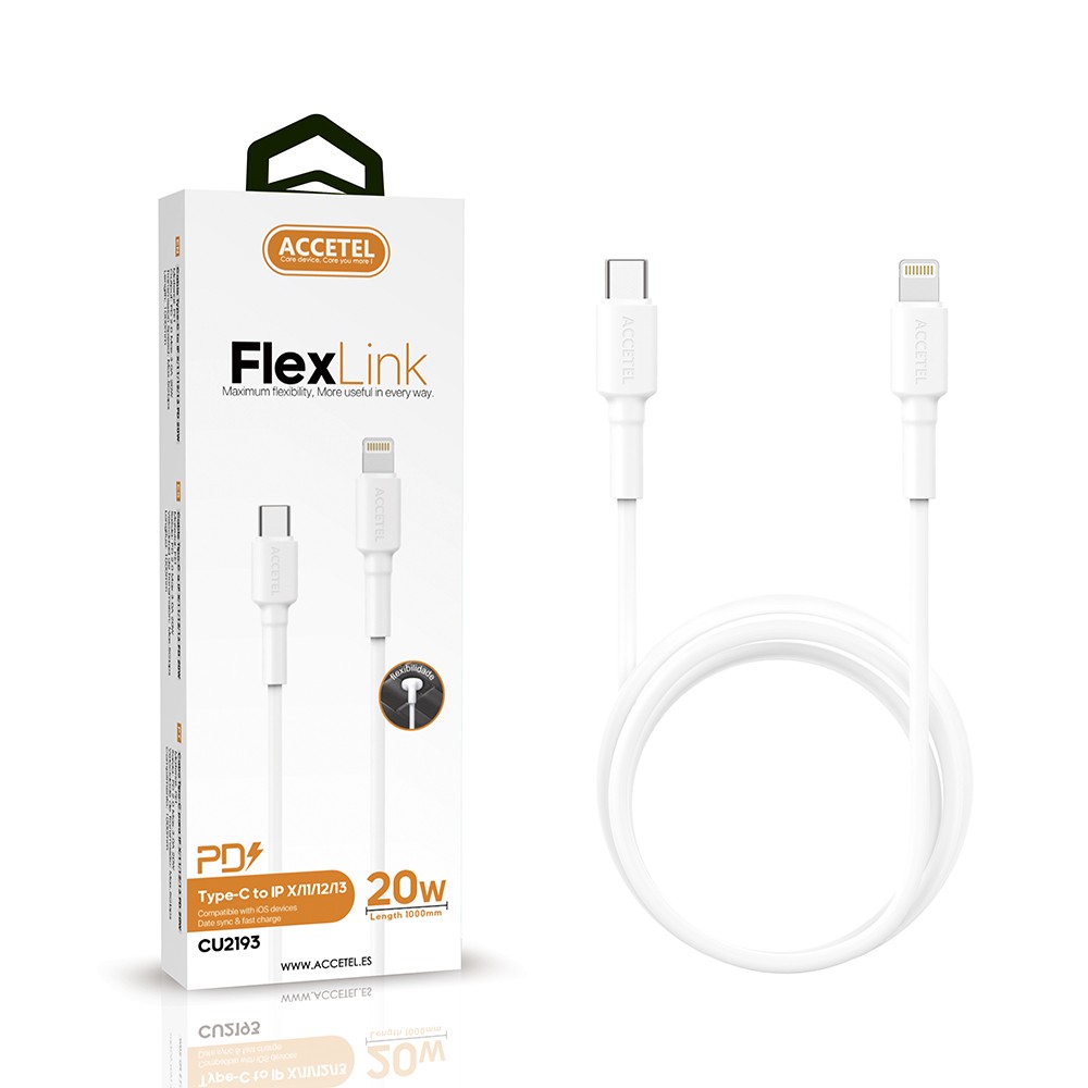 CU2193 Cable Carga Rápida PD 20W TPE Type-C a Lightning (1M) Blanco Cable de Carga Rápida y Transferencia de Datos