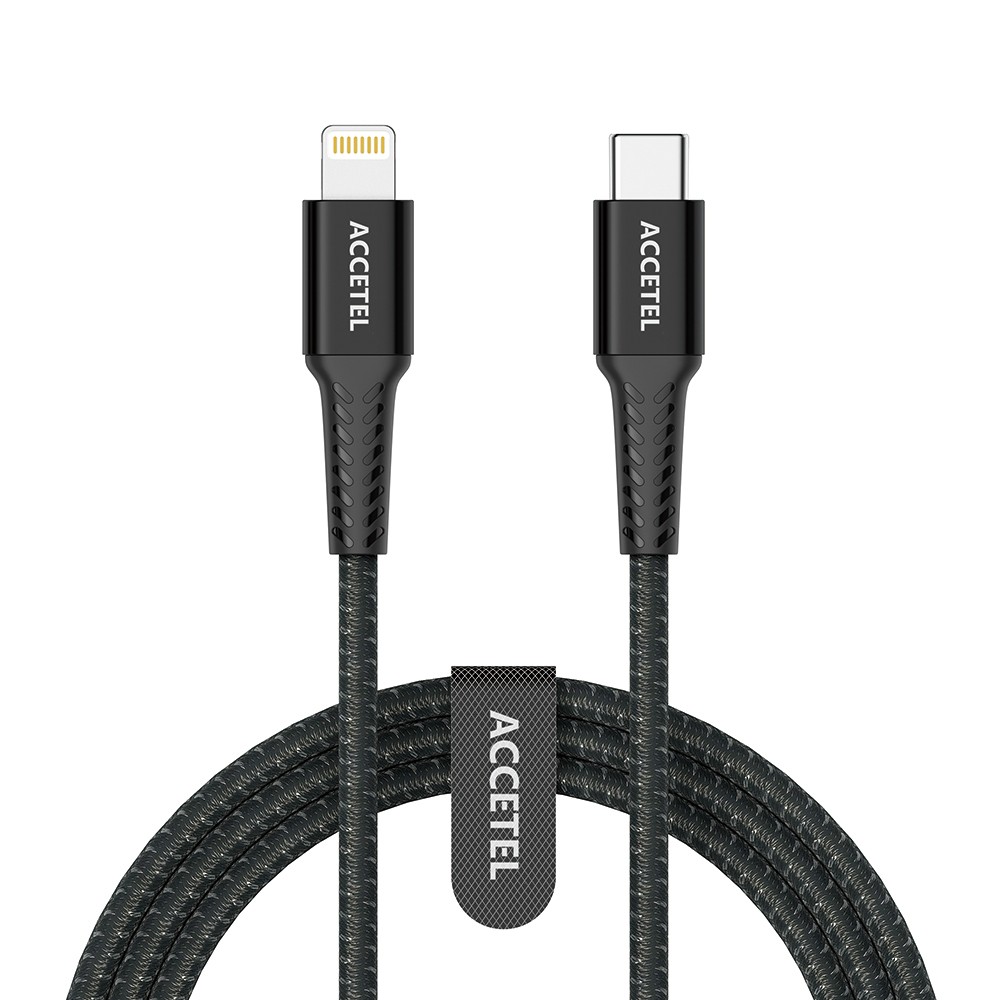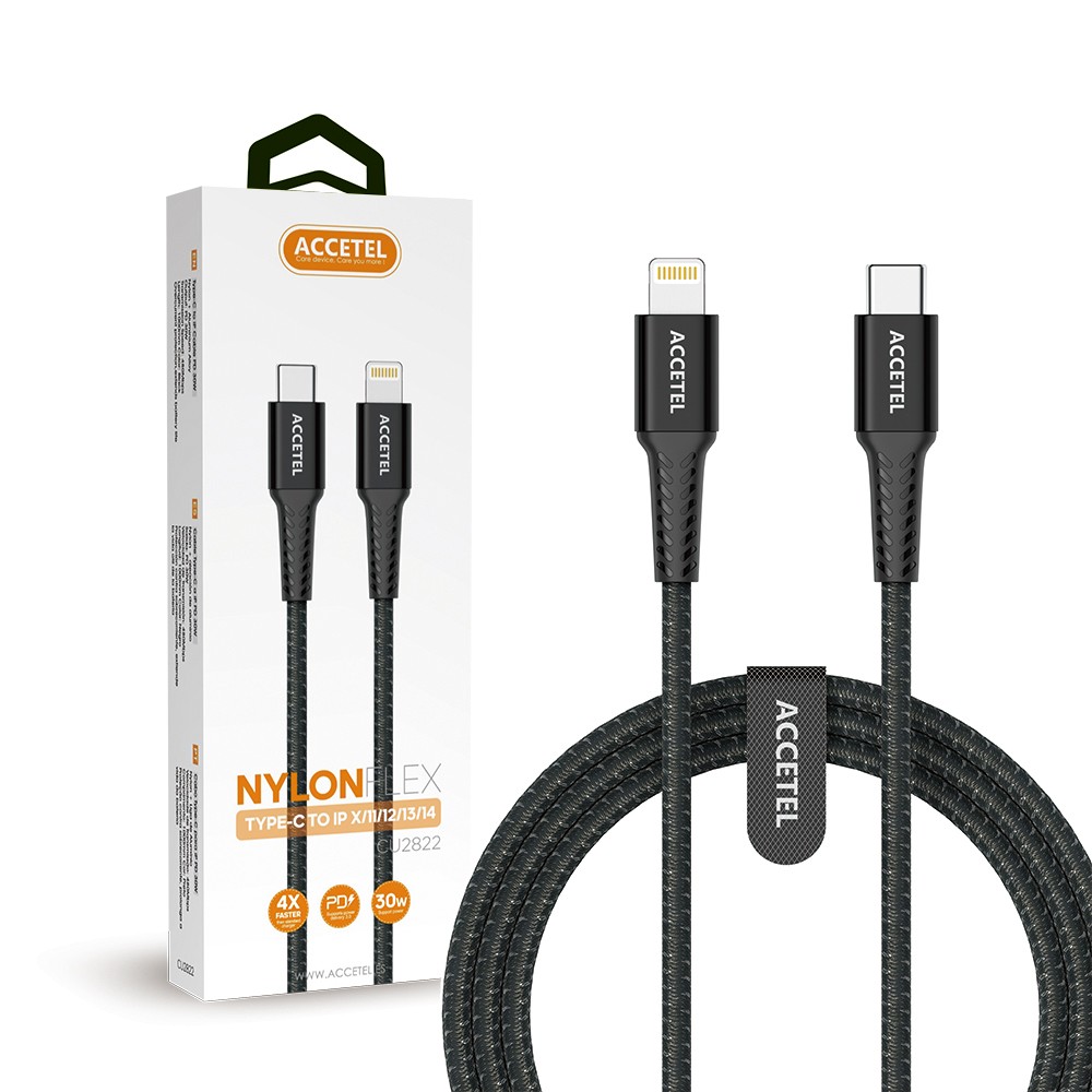 CU2822 Cable Carga Rápida Nylon Flex 30W – Type-C a Lightning (1M) Negro Cable de Carga Rápida y Transferencia de Datos