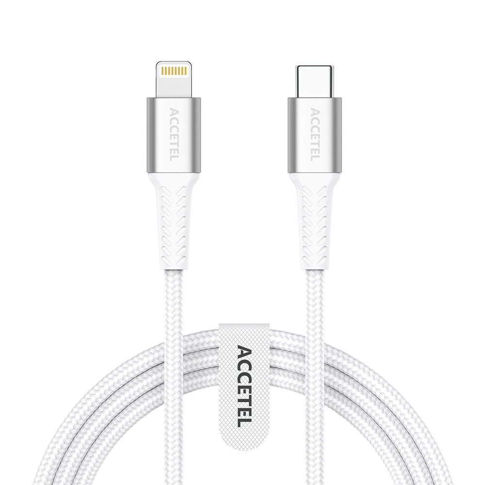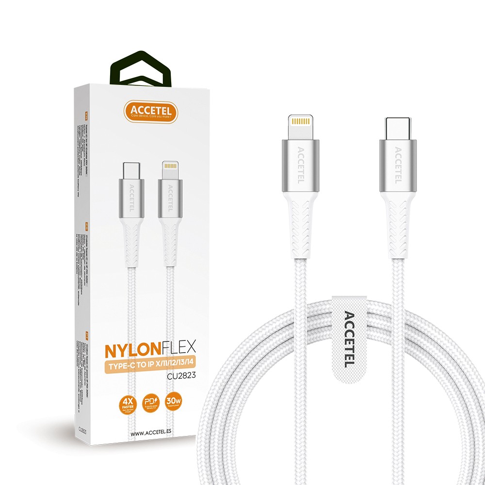 CU2823 Cable Carga Rápida Nylon Flex 30W – Type-C a Lightning (1M) Blanco Cable de Carga Rápida y Transferencia de Datos