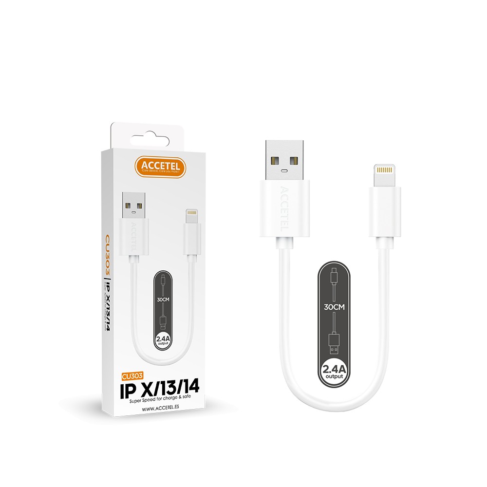 CU303 Cable Datos 2.4A – Lightning Blanco (0.30M) Cable de Carga y Transferencia de Datos