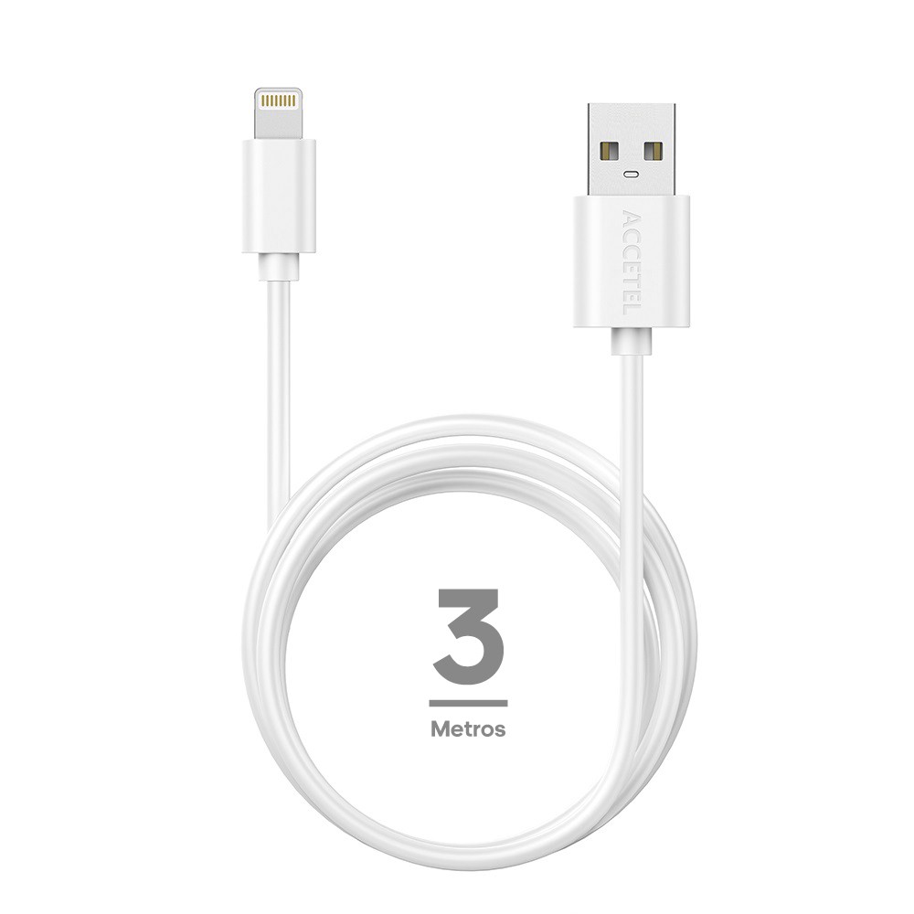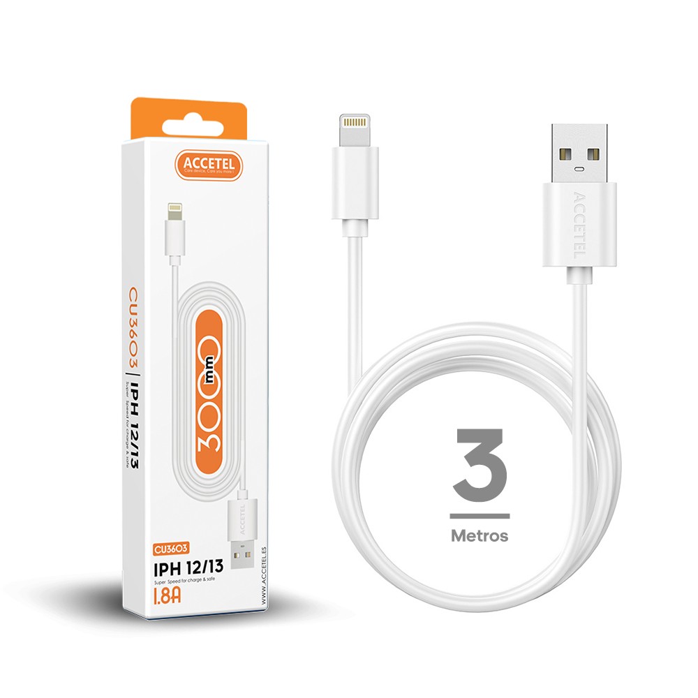 CU3603 Cable Datos 1.8A – Lightning Blanco (3M) Cable de Carga y Transferencia de Datos