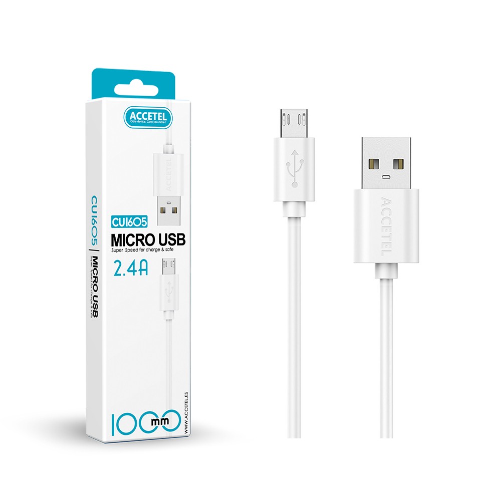 CU1605 Cable Datos 2.4A – Micro USB Blanco (1M) Cable de Carga y Transferencia de Datos