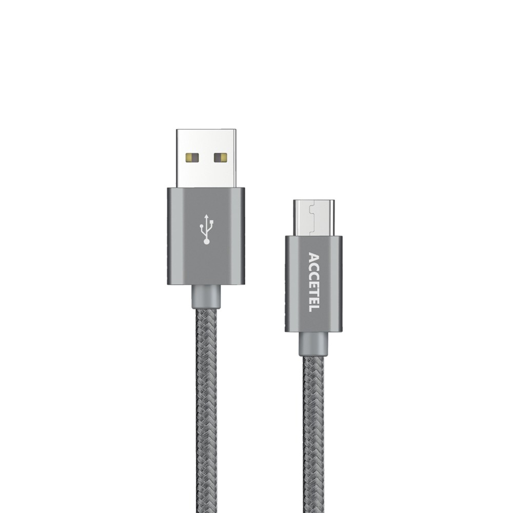 CU1804 Cable Datos Nylon 2.4A – Micro USB Gris Cable de Carga y Transferencia de Datos