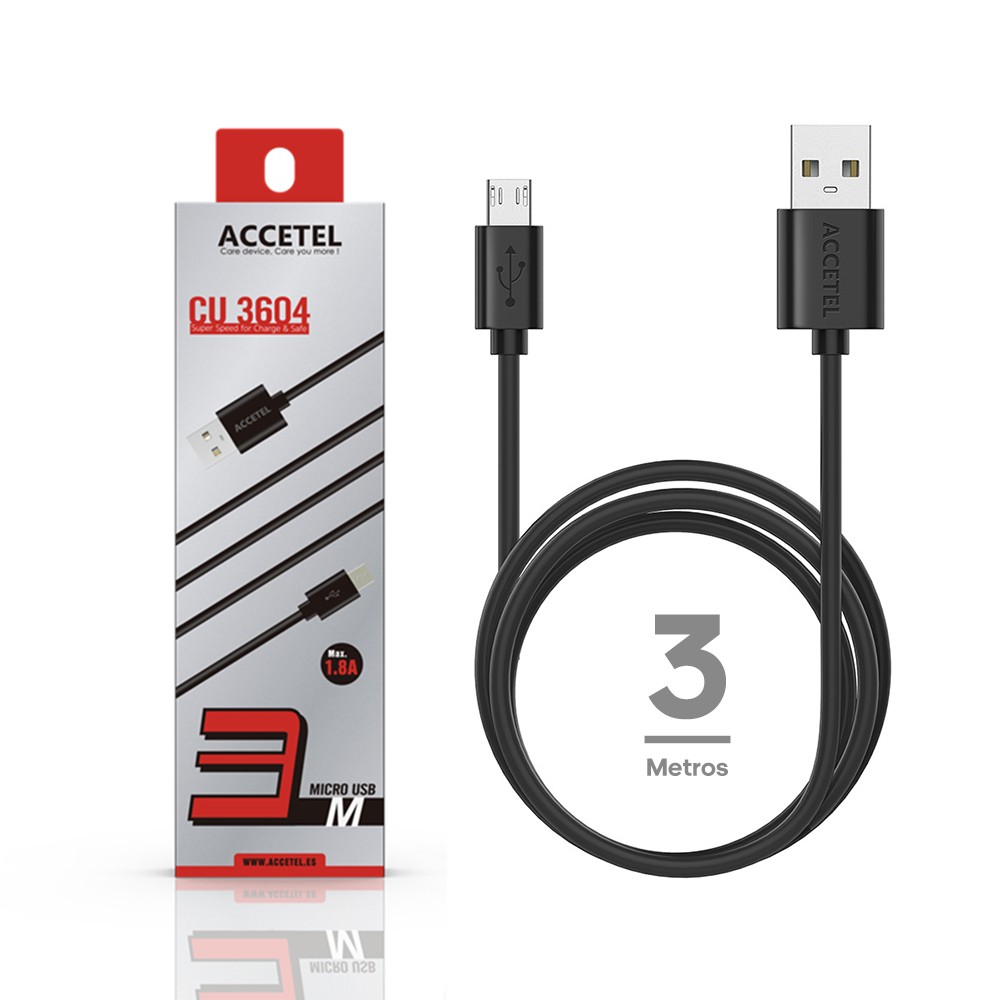 CU3604 Cable Datos 1.8A – Micro USB Negro (3M) Cable de Carga y Transferencia de Datos