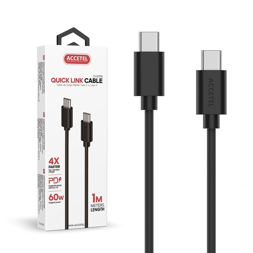CU2106 Cable Carga Rápida 60W Type-C a Type-C Max.20V 3A (1M) Negro Cable de Carga Rápida y Transferencia de Datos
