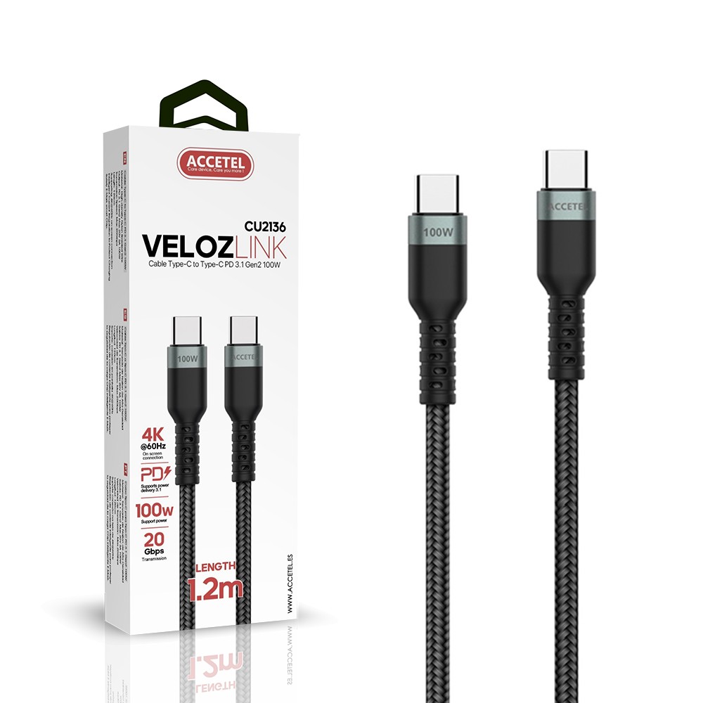 Descubre el cable CU2136 Cable de USB-C a USB-C PD 3.1 Gen 2 (100W USB TYPE-C Trans.20Gbps 4K 1.2M), el complemento esencial para tus dispositivos móviles. Este cable ha sido diseñado con precisión y eficacia, ofreciendo una transferencia de datos rápida y una carga rápida gracias a sus especificaciones técnicas avanzadas y su construcción duradera.