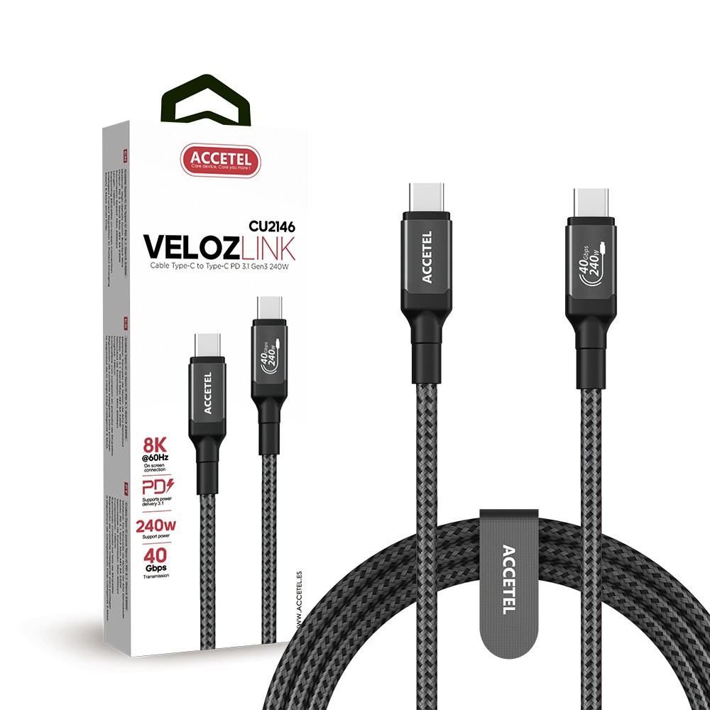 Descubre el cable CU2146 Cable de USB-C a USB-C PD 3.1 Gen 3 (240W USB TYPE-C Trans.40Gbps 8K 1.2M), el complemento esencial para tus dispositivos móviles. Este cable ha sido diseñado con precisión y eficacia, ofreciendo una transferencia de datos rápida y una carga rápida gracias a sus especificaciones técnicas avanzadas y su construcción duradera.
