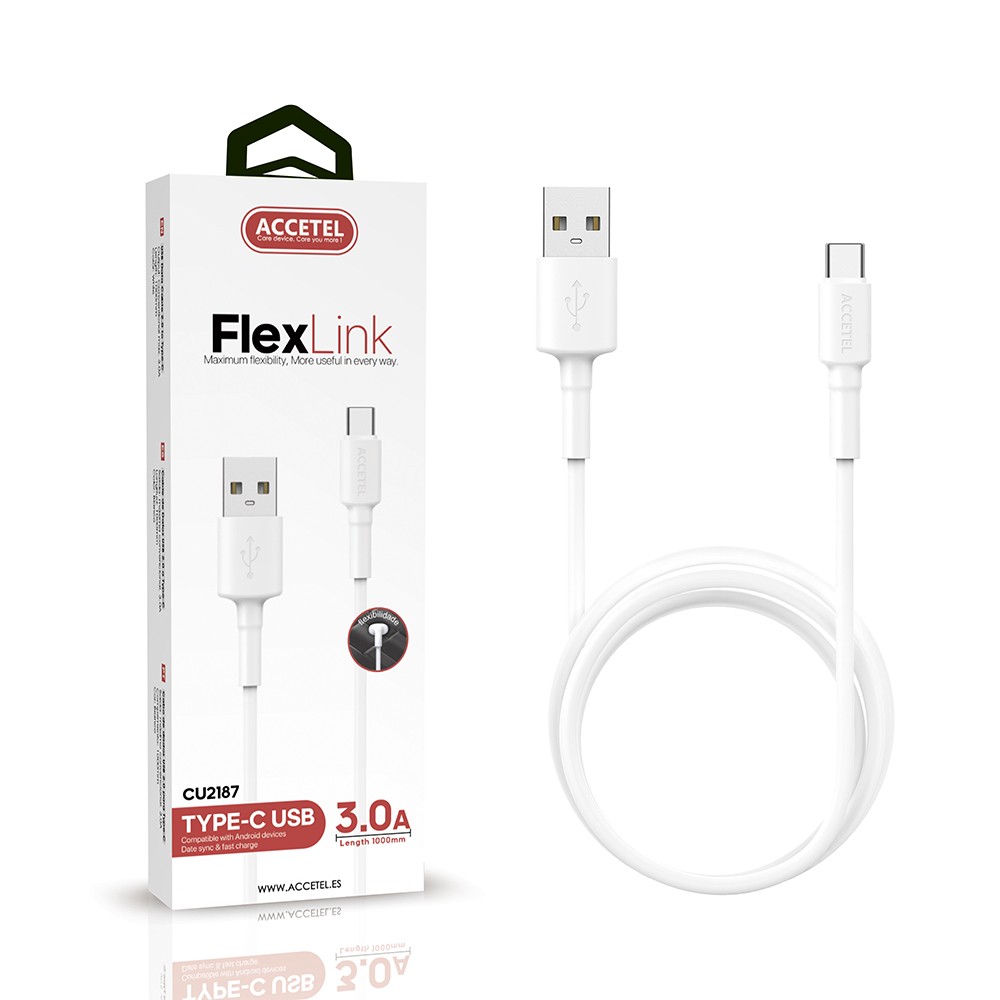 CU2187 Cable Datos TPE 3.0A – Type C (1M) Blanco Cable de Carga y Transferencia de Datos