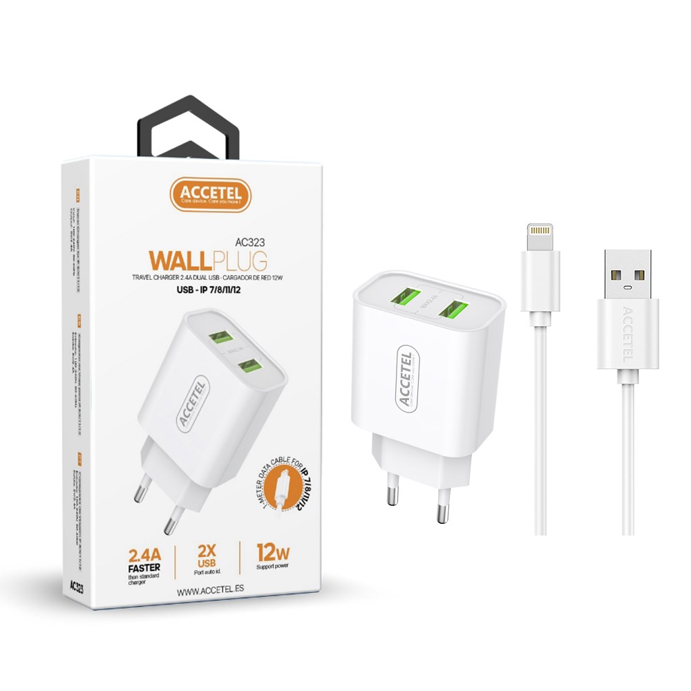 Con un amperaje máximo de 2.4A y un voltaje máximo de 5V, este cargador proporciona una carga potente y eficiente. Equipado con un puerto USB-A Dual, es compatible con una amplia gama de dispositivos, desde smartphones hasta tabletas, garantizando una experiencia de carga versátil y universal. Además, incluye un Lightning de 1 metro de longitud.