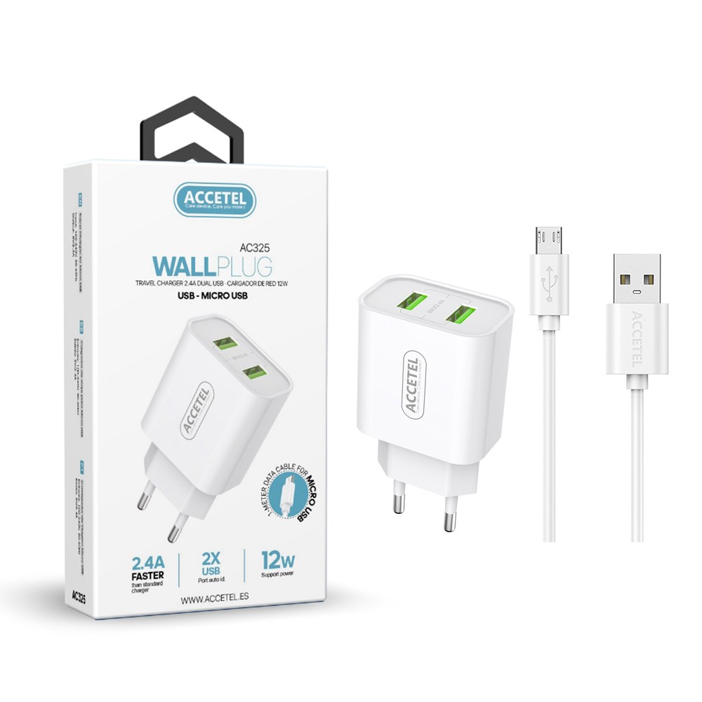 Con un amperaje máximo de 2.4A y un voltaje máximo de 5V, este cargador proporciona una carga potente y eficiente. Equipado con un puerto USB-A Dual, es compatible con una amplia gama de dispositivos, desde smartphones hasta tabletas, garantizando una experiencia de carga versátil y universal. Además, incluye un Micro USB de 1 metro de longitud.