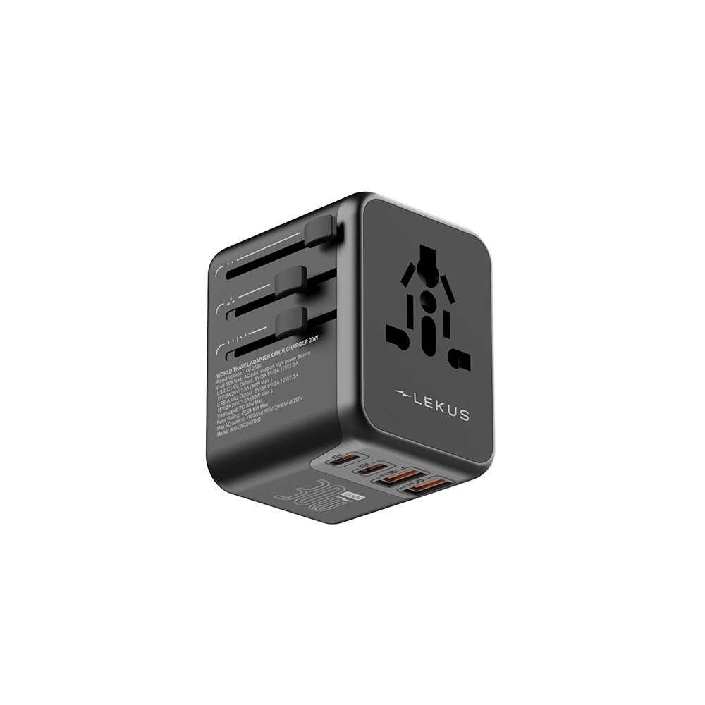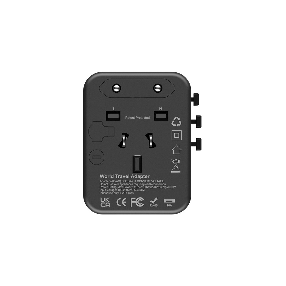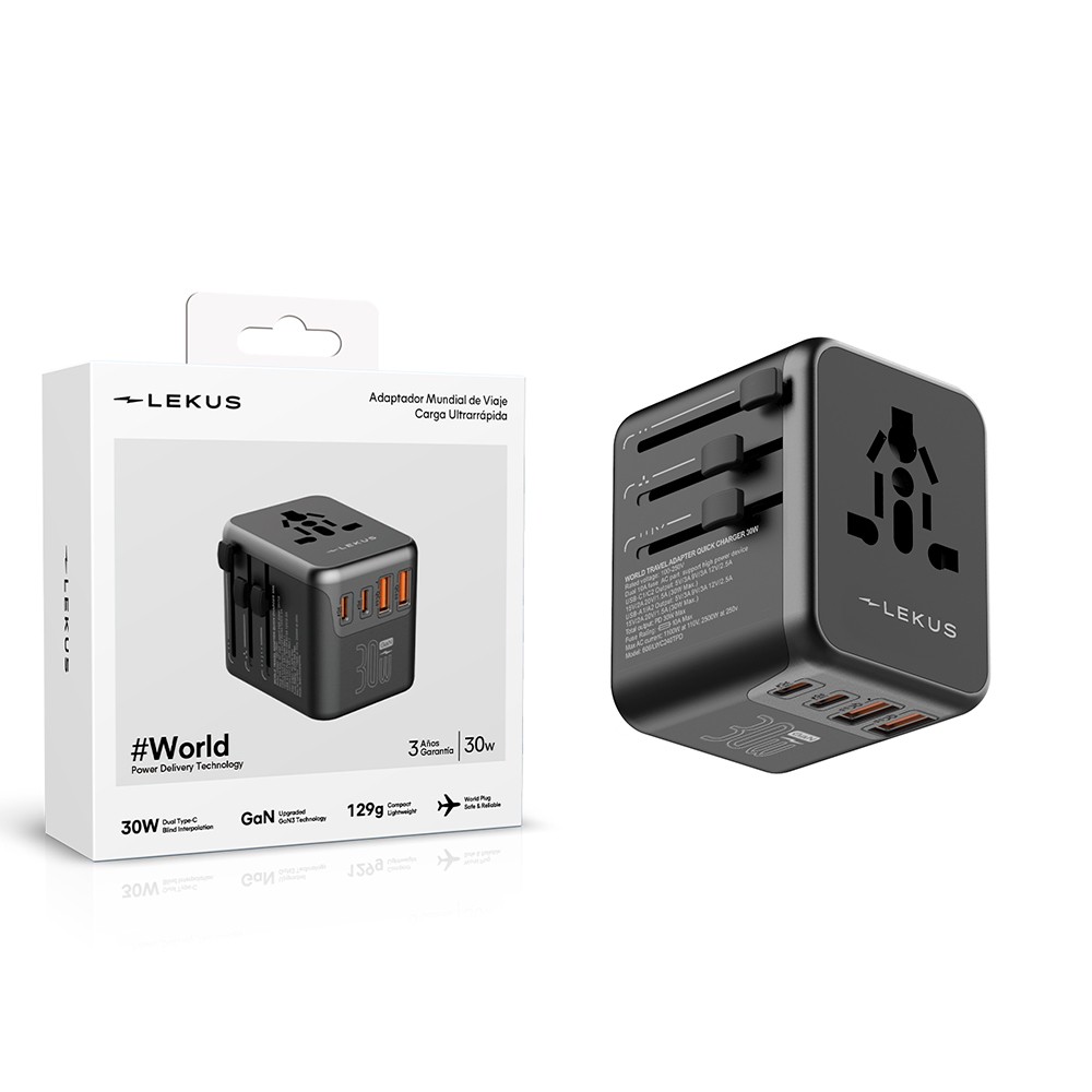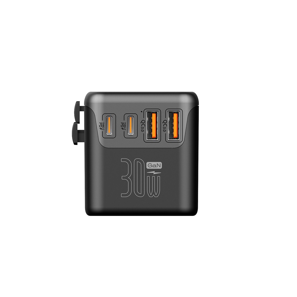 Un cargador de viaje universal con enchufes integrados para Japón, EE. UU., Australia, UE y Reino Unido. Se puede utilizar en más de 150 países de todo el mundo. Con la tecnología de carga GaN, admite una capacidad de carga rápida de hasta 30W para cargar múltiples dispositivos a velocidad avanzada mientras viaja. Conveniente para cargar 1 dispositivo de carga de AC y 4 dispositivos de carga USB al mismo tiempo.
