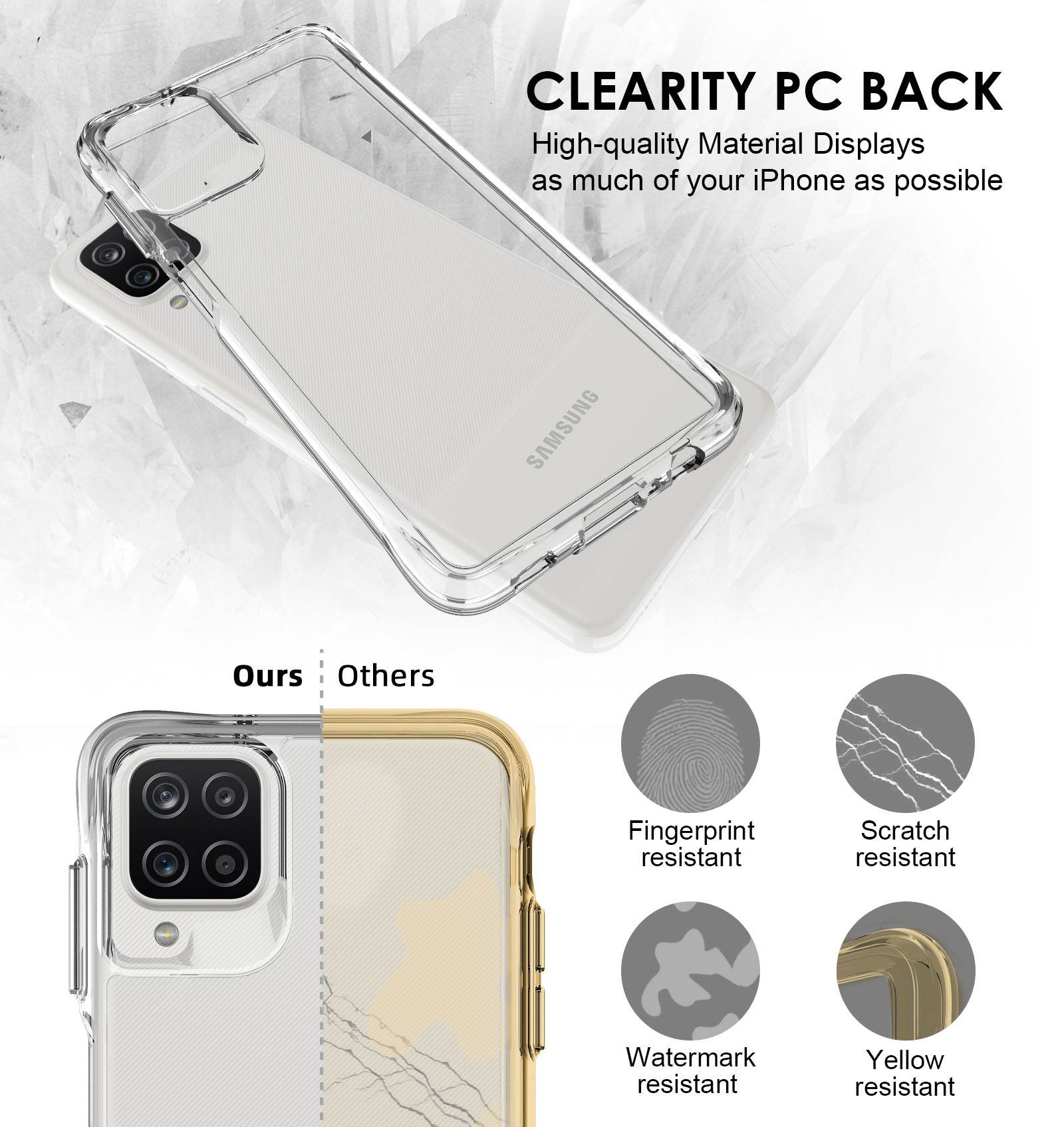 La funda antigolpe para Samsung Galaxy A12 está construida con un material que no se pone amarillo con el tiempo, garantizando que mantenga su apariencia clara y nueva incluso después de un uso prolongado. Este material avanzado proporciona una protección robusta contra golpes y caídas, asegurando que tu dispositivo esté siempre en las mejores condiciones.