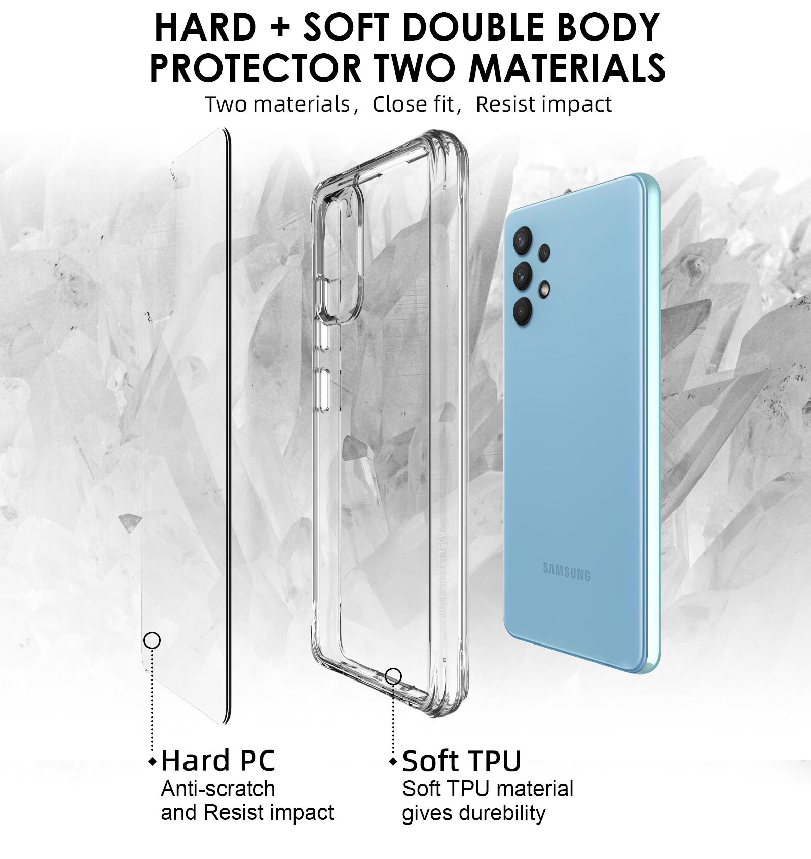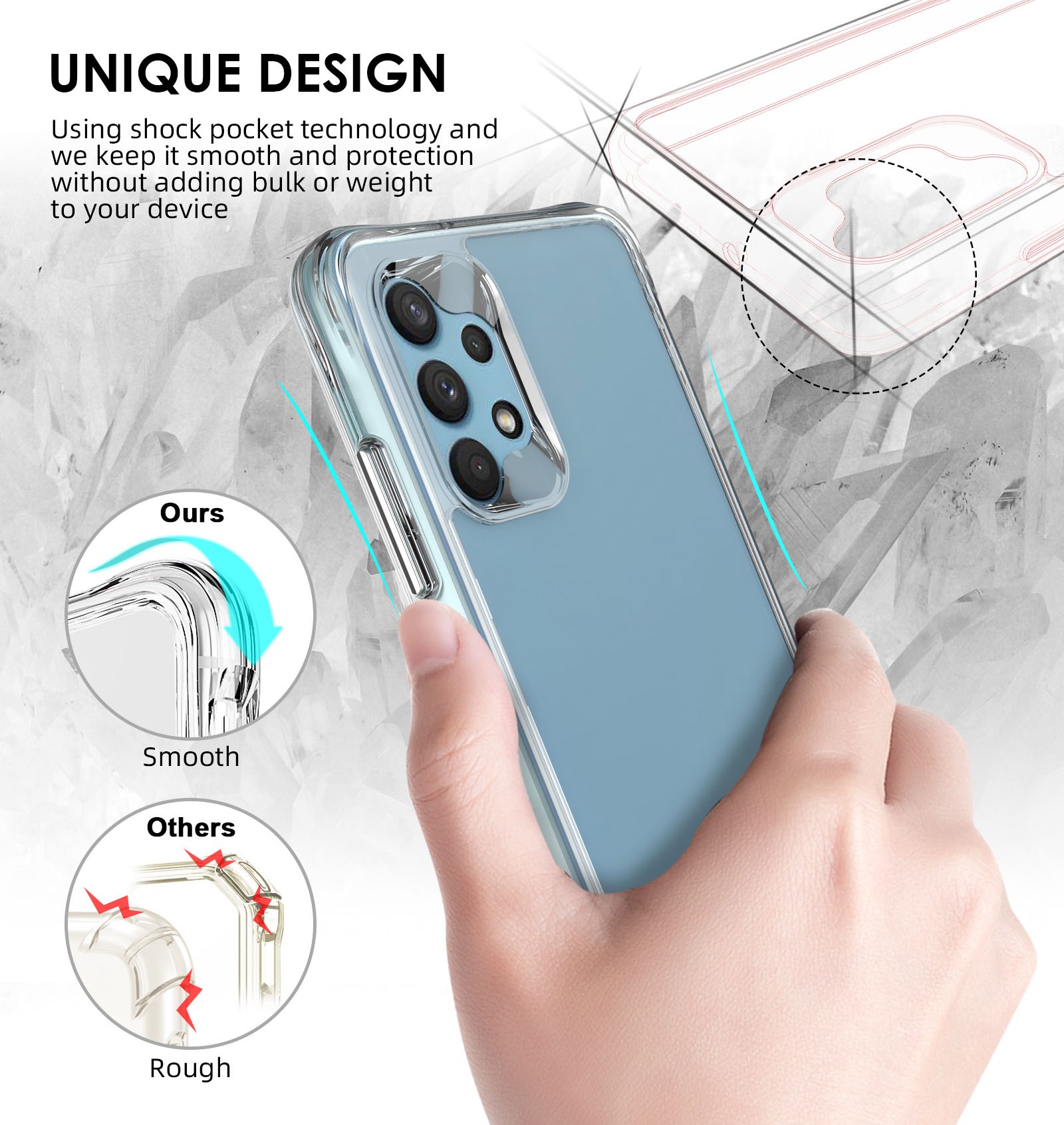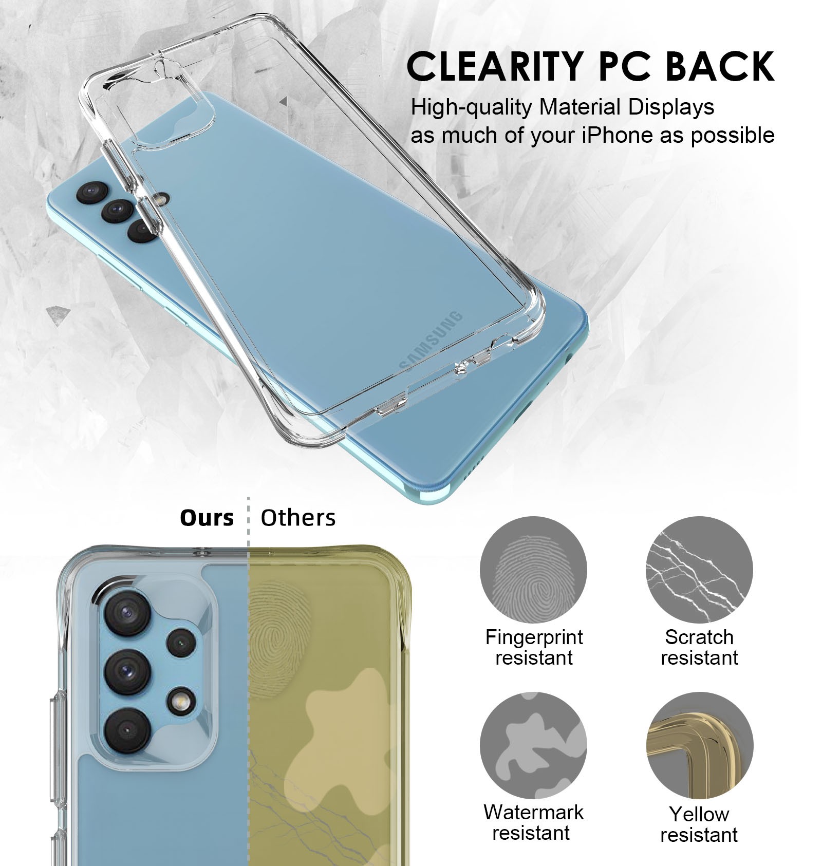 La funda antigolpe para Samsung Galaxy A32 4G está construida con un material que no se pone amarillo con el tiempo, garantizando que mantenga su apariencia clara y nueva incluso después de un uso prolongado. Este material avanzado proporciona una protección robusta contra golpes y caídas, asegurando que tu dispositivo esté siempre en las mejores condiciones.