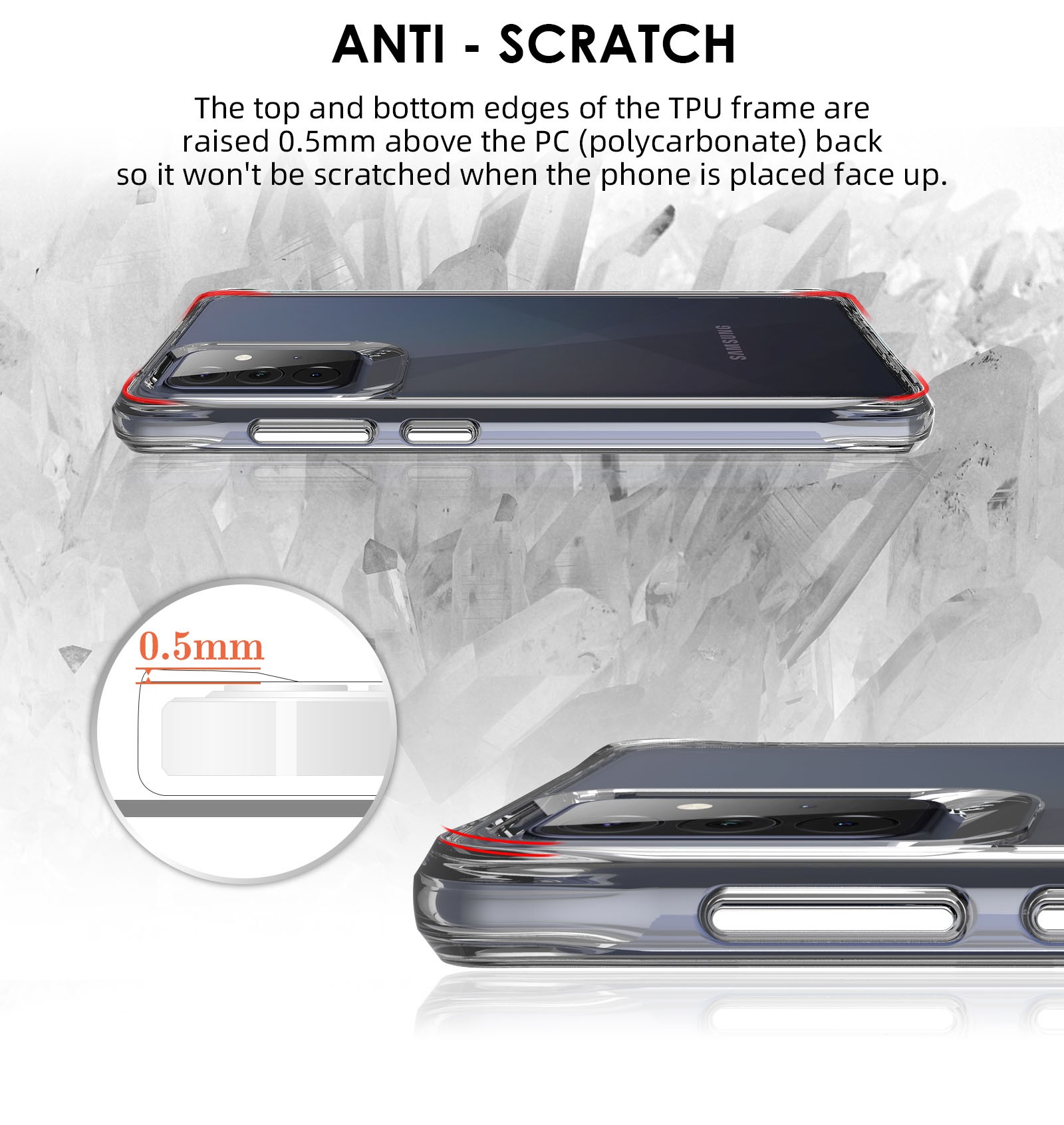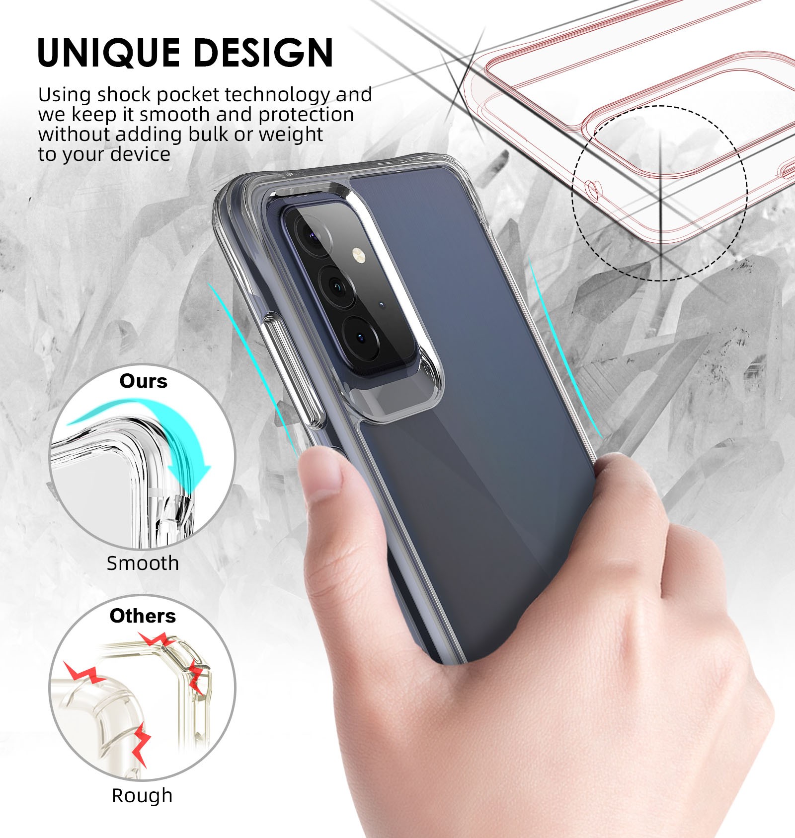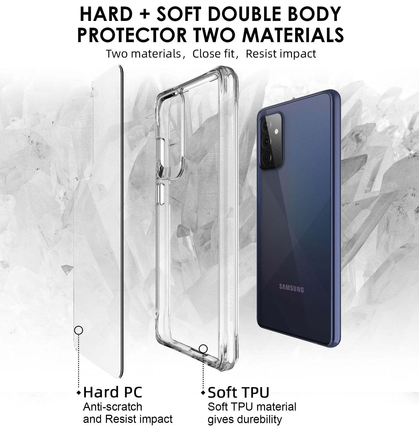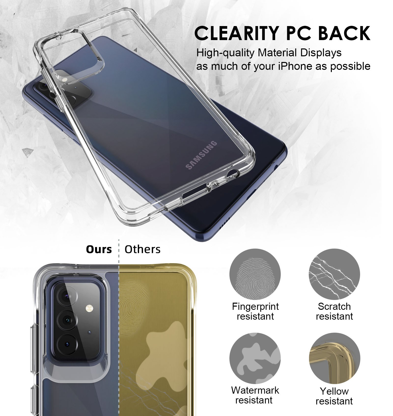 La funda antigolpe para Samsung Galaxy A72 4G/5G está construida con un material que no se pone amarillo con el tiempo, garantizando que mantenga su apariencia clara y nueva incluso después de un uso prolongado. Este material avanzado proporciona una protección robusta contra golpes y caídas, asegurando que tu dispositivo esté siempre en las mejores condiciones.