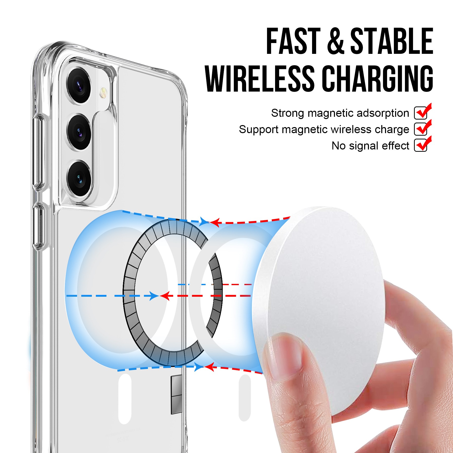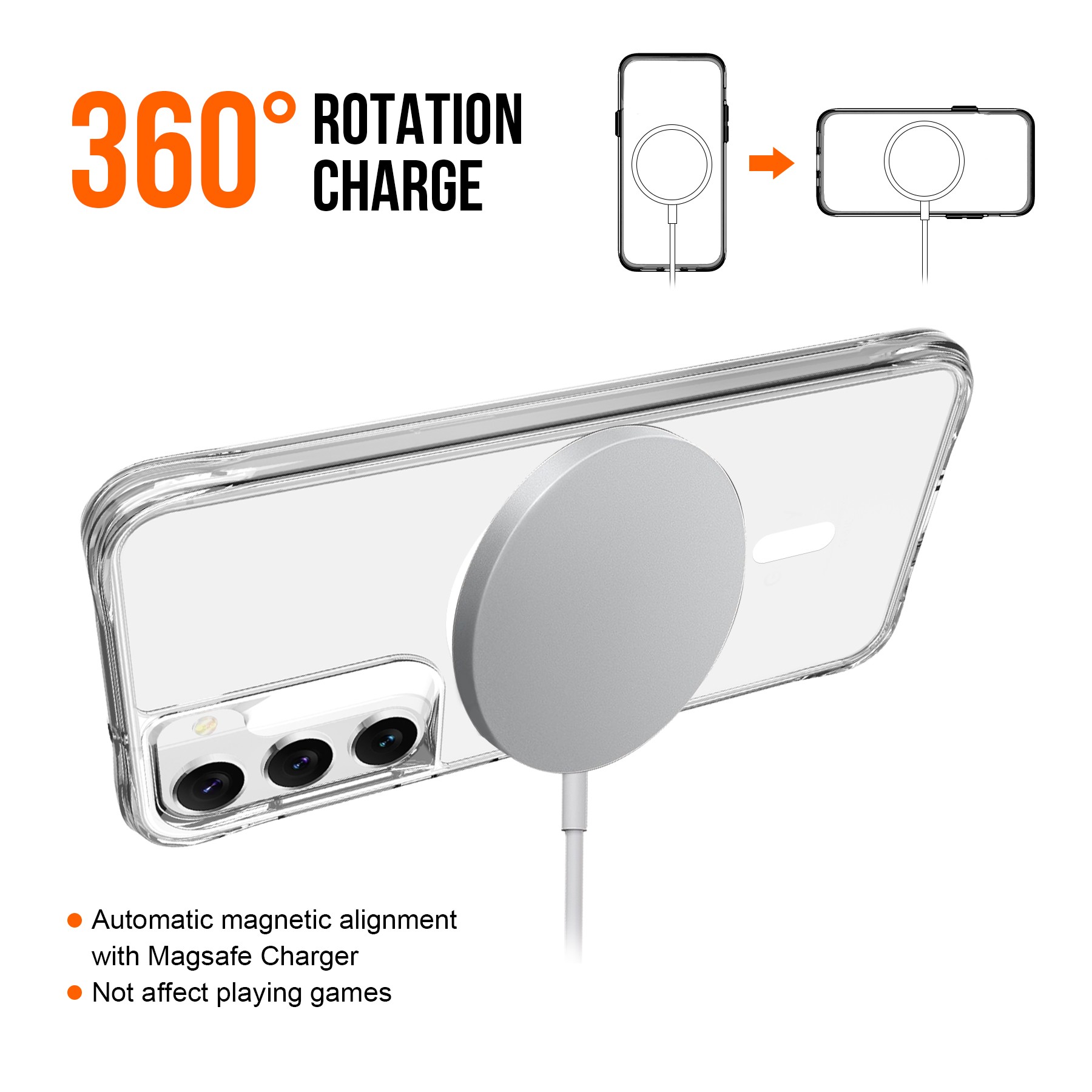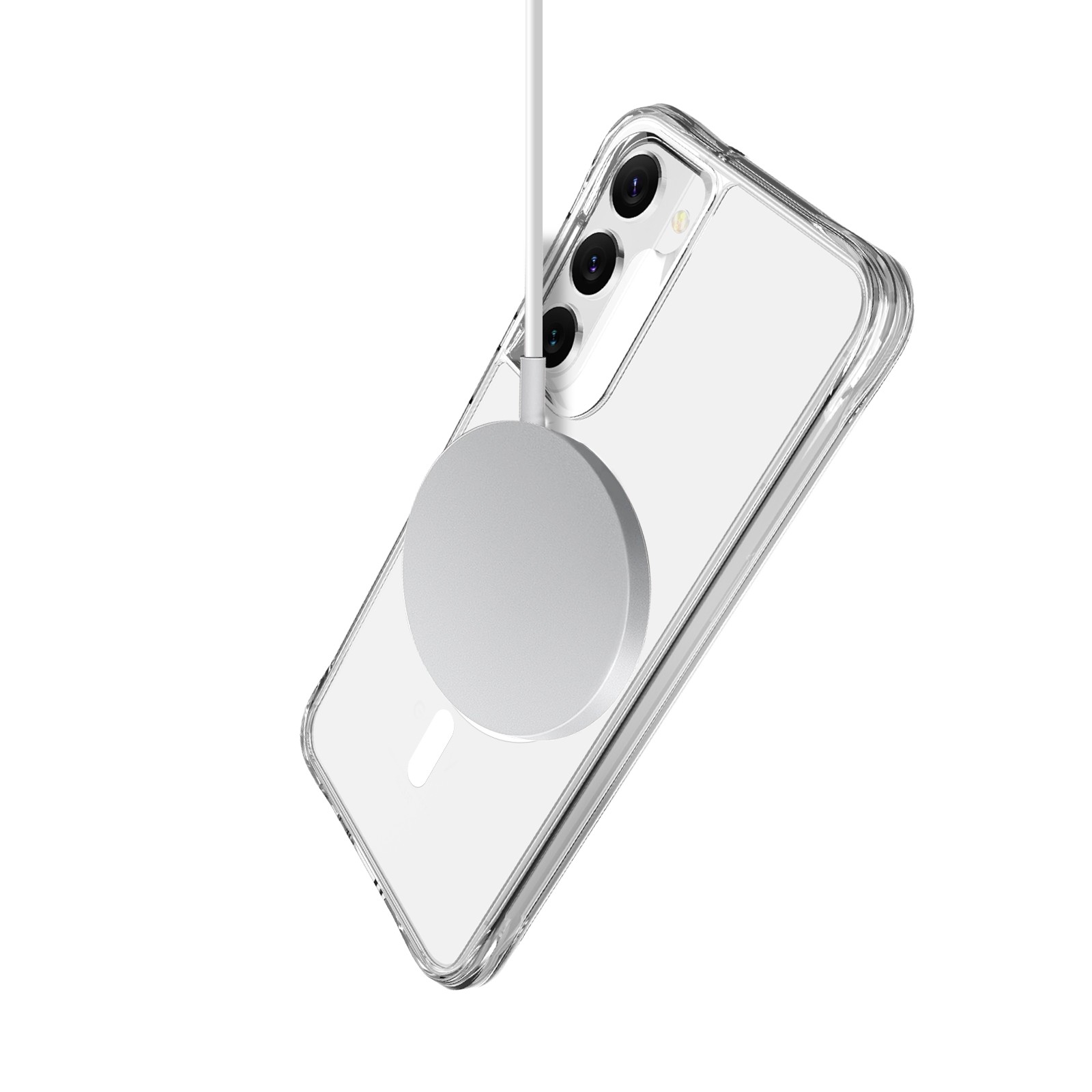 La funda antigolpe para Samsung Galaxy S23+ 5G está construida con un material que no se pone amarillo con el tiempo, garantizando que mantenga su apariencia clara y nueva incluso después de un uso prolongado. Este material avanzado proporciona una protección robusta contra golpes y caídas, asegurando que tu dispositivo esté siempre en las mejores condiciones. Esta funda cuenta con imán en la parte trasera, permitiendo cargar tu dispositivo de forma inalámbrica y utilizar cualquier accesorio compatible con la tecnología Magsafe