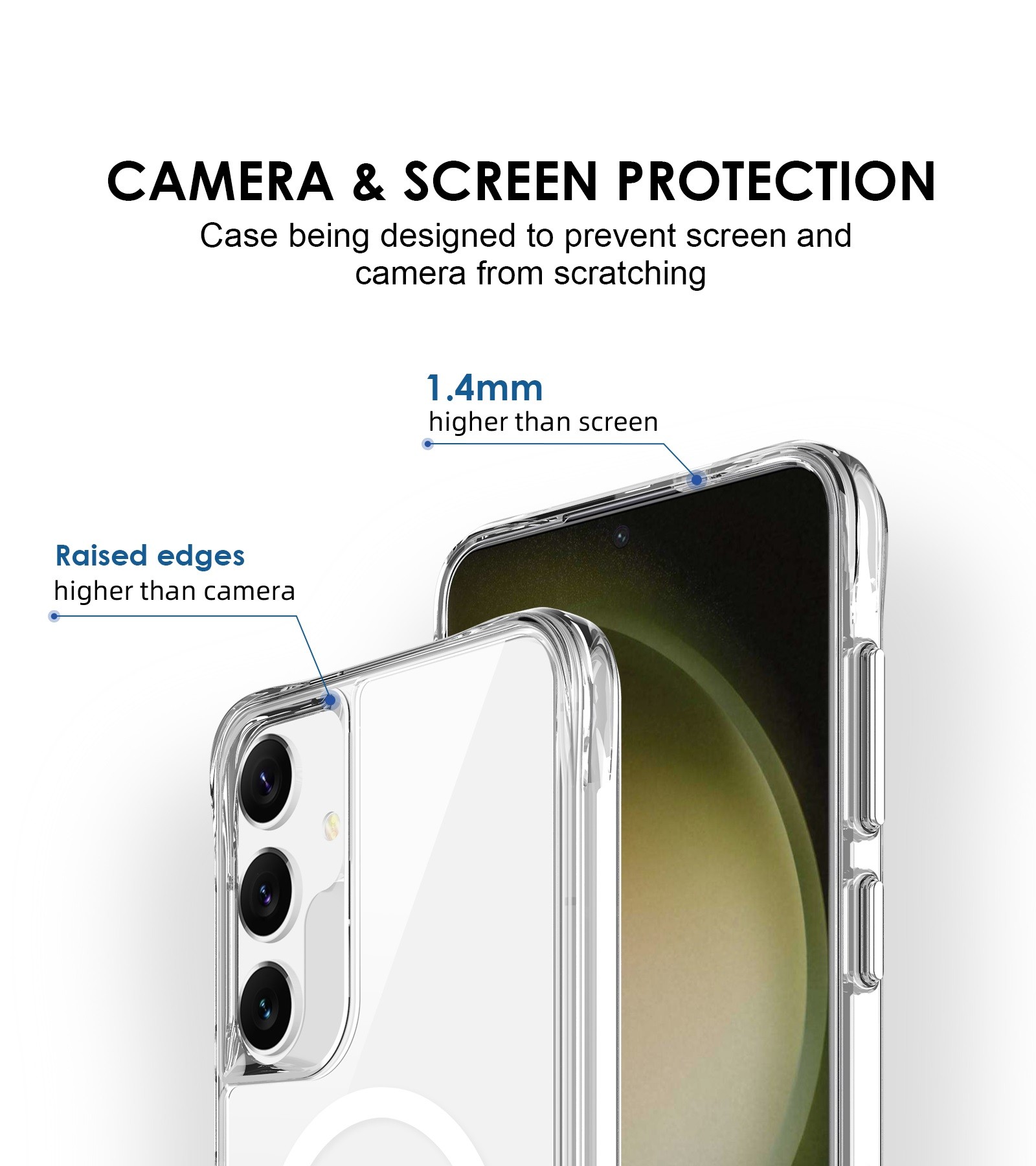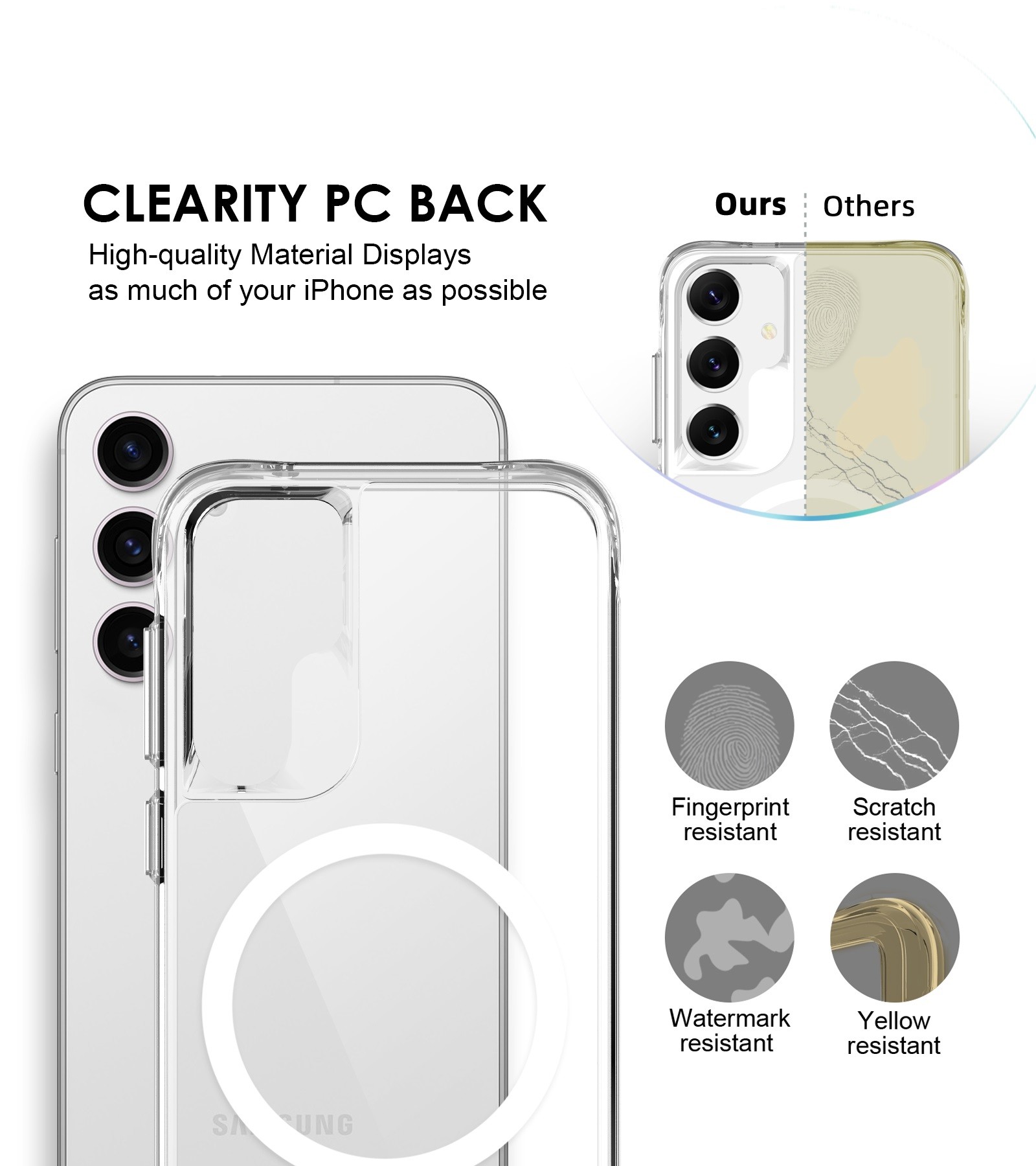 La funda antigolpe para Samsung Galaxy S24 5G está construida con un material que no se pone amarillo con el tiempo, garantizando que mantenga su apariencia clara y nueva incluso después de un uso prolongado. Este material avanzado proporciona una protección robusta contra golpes y caídas, asegurando que tu dispositivo esté siempre en las mejores condiciones. Esta funda cuenta con imán en la parte trasera, permitiendo cargar tu dispositivo de forma inalámbrica y utilizar cualquier accesorio compatible con la tecnología Magsafe