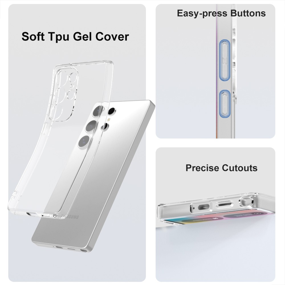 Presentamos nuestra funda de silicona Clear TPU 2.0 para Samsung Galaxy S25 Ultra, diseñada específicamente para proporcionar una protección superior y mantener la estética original de tu dispositivo. Esta funda está fabricada con materiales de la más alta calidad, asegurando una durabilidad excepcional y una defensa robusta contra golpes, caídas y rayaduras