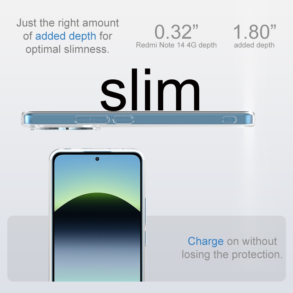 La funda de silicona Clear TPU 2.0 está construida con un material que no se pone amarillo con el tiempo, garantizando que tu funda mantenga su apariencia clara y nueva incluso después de un uso prolongado. Esto asegura que tu Xiaomi Redmi Note 14 4G se vea siempre impecable, resaltando su diseño elegante.
